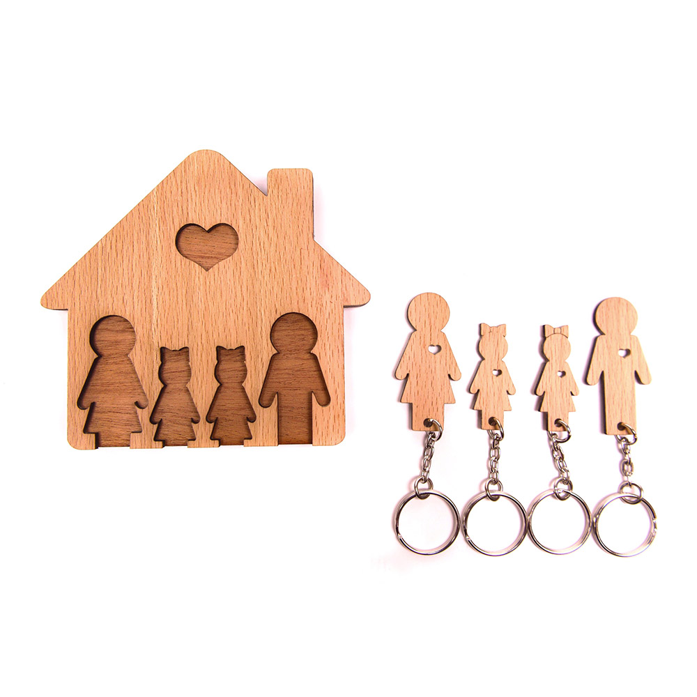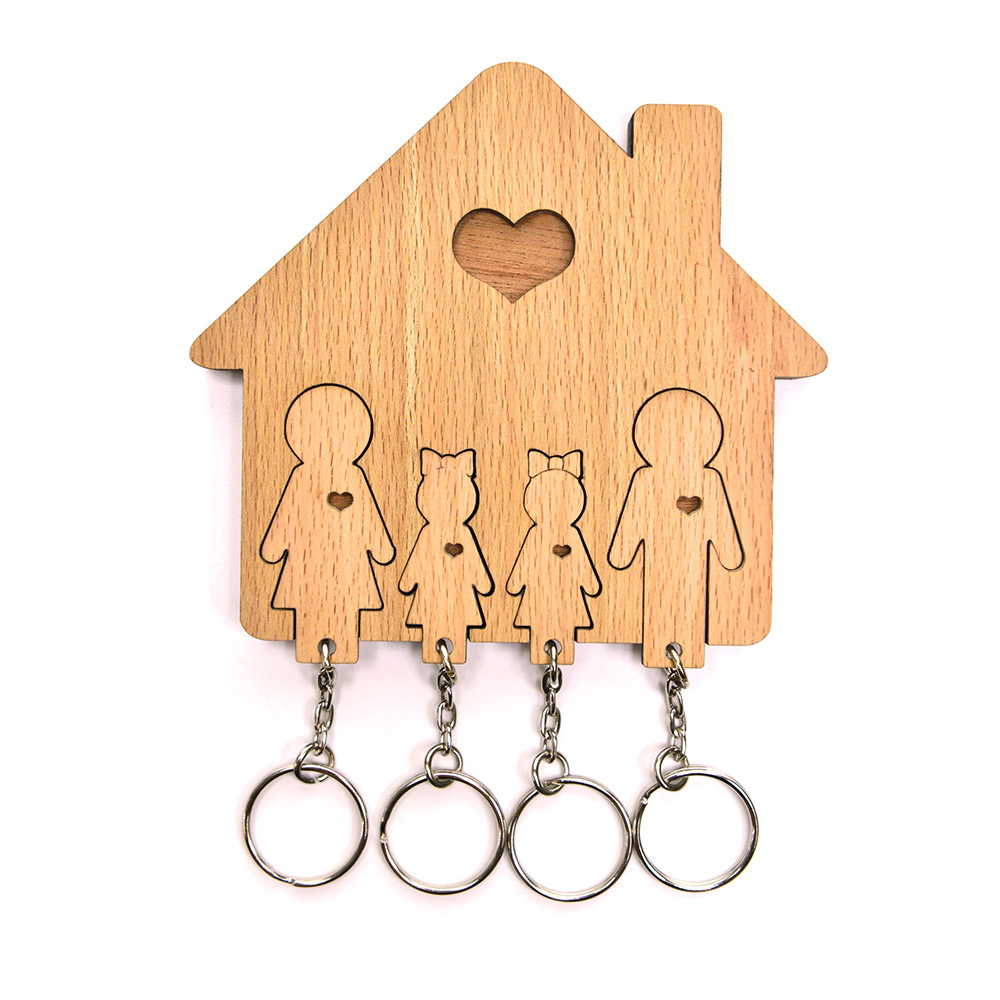 Ключи от дома часто валяются в прихожей или сумке, и многие из нас тратят ценные минуты на их поиски. Ключницы Mimi - это не только практичный, но и очень уютный аксессуар, который украсит интерьер и станет надежным «хранителем» ваших ключей. Набор «Семья с двумя дочками» станет замечательным подарком на новоселье - помимо самой ключницы из качественной древесины, в него входят четыре фигурных брелка, которые вставляются в прорези на корпусе. Теперь ключи всегда будут под рукой, и вы не перепутаете комплекты.