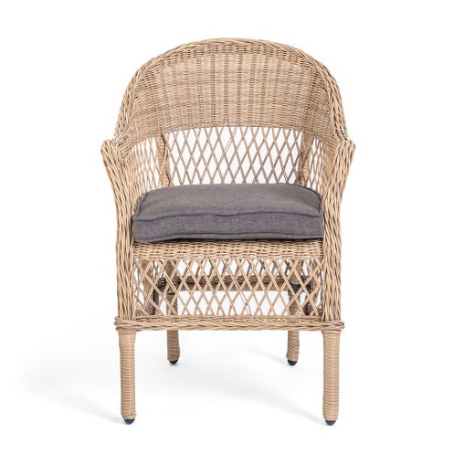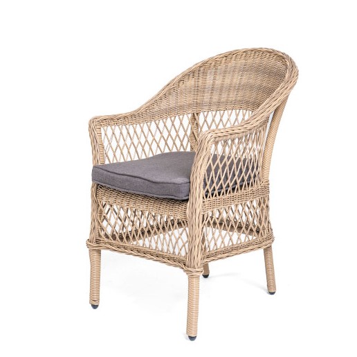 Стул Сицилия из круглого искусственного ротанга соломенного оттенка. Размер ширина 59 см, глубина 64 см, высота 82 см.