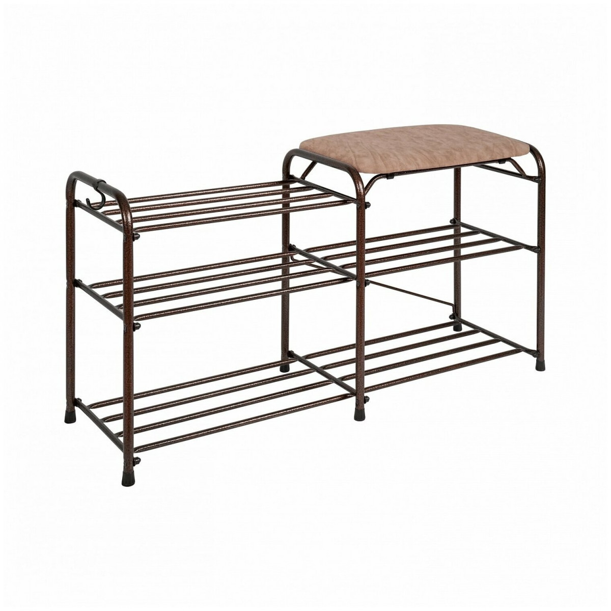 Подставка для обуви ЗМИ, 3-х полочная с бежевым сиденьем, Медный антик, 89х30х48см. купить в Симферополе недорого с доставкой, цены на сайте