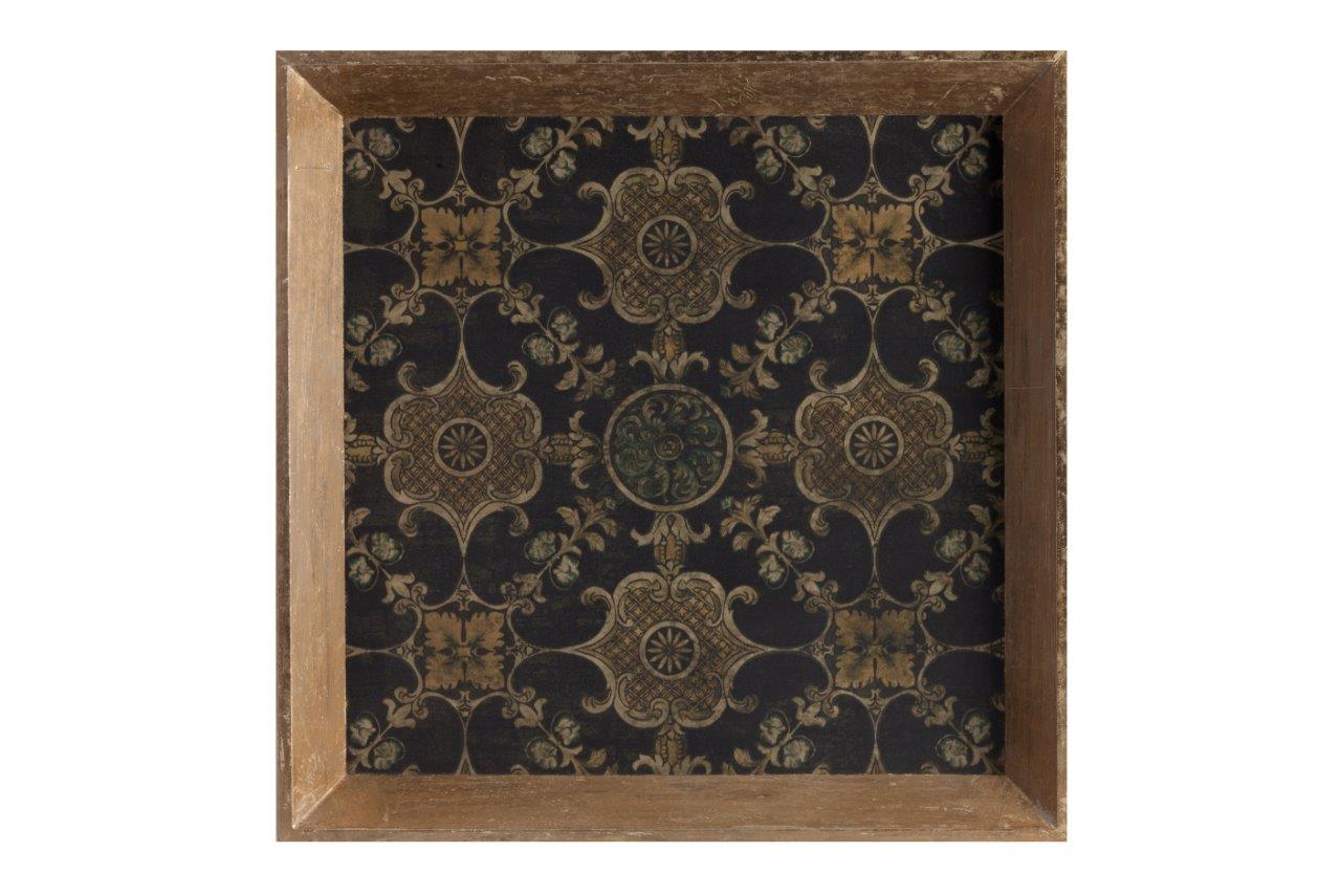 Декоративный поднос Charlis квадратной формы изготовлен из МДФ. Поднос декорирован красивой росписью в виде орнамента в приглушенных тонах зелёного, бежевого, коричневого цветов. Гармония цвета и рисунка символизирует покой и единение с природой. Несет в себе как хозяйственную, так и эстетическую функцию.