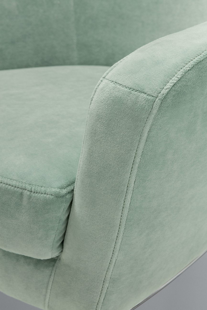 Ткань Malibu velvet, несъемный чехол, Эргономичная форма сиденья и декоративное основание делают кресло SHELL уникальным предметом мебели. Сиденье кресла как будто обнимает сидящего в нем, даря ощущение комфорта и покоя. Малый вес кресла SHELL обеспечивается его облегченным каркасом, который может быть исполнен в виде металлических ножек или в виде вращающегося основания.