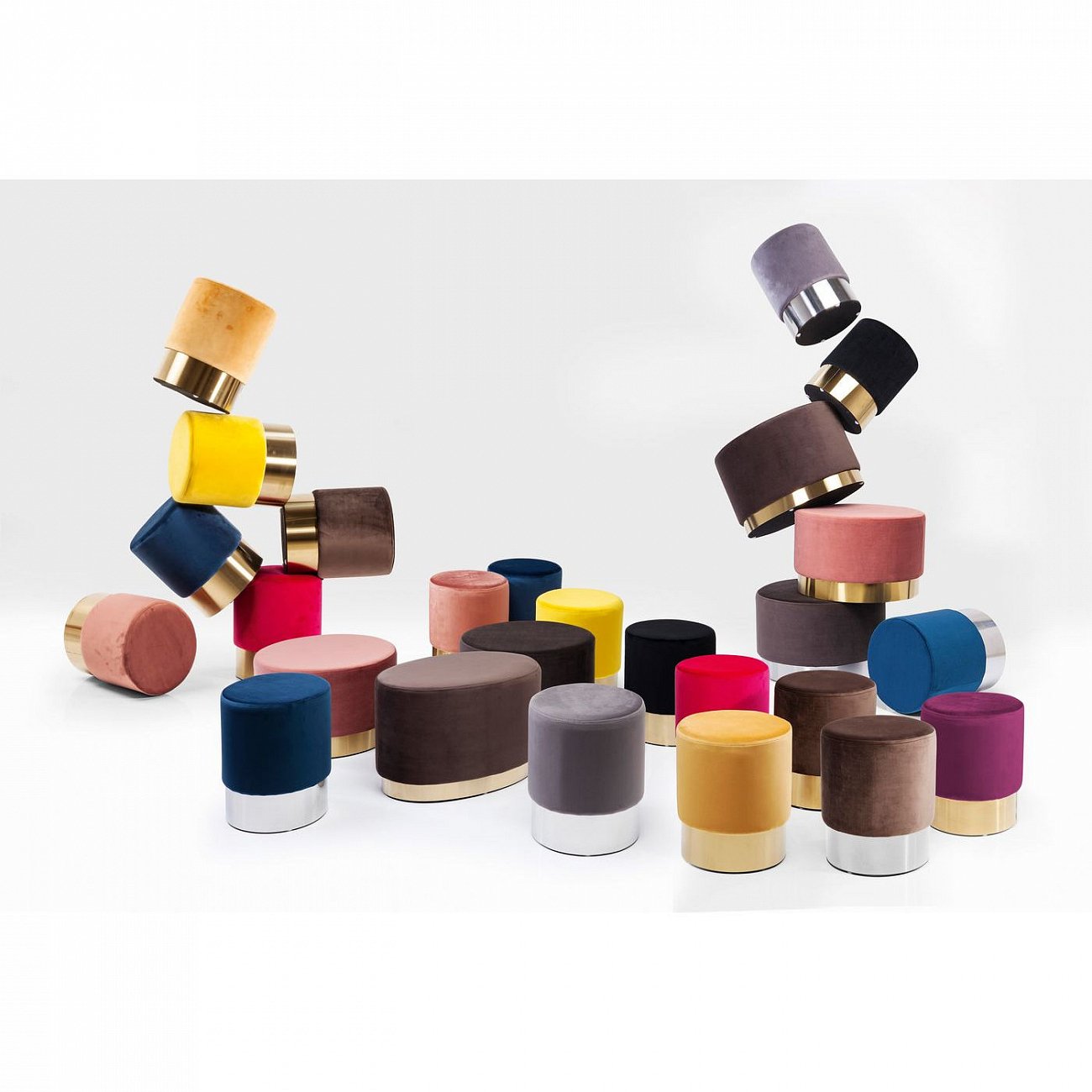 Прекрасная серия пуфов в ретро-стиле впечатляет элегантным оформлением, где модные цветовые решения сочетаются с нежной на ощупь тканью под бархат. Металлическое основание подчеркивает гламурный внешний вид. Пуф украсит даже самый маленький угол в интерьере. Доступен в других цветах и размерах.
