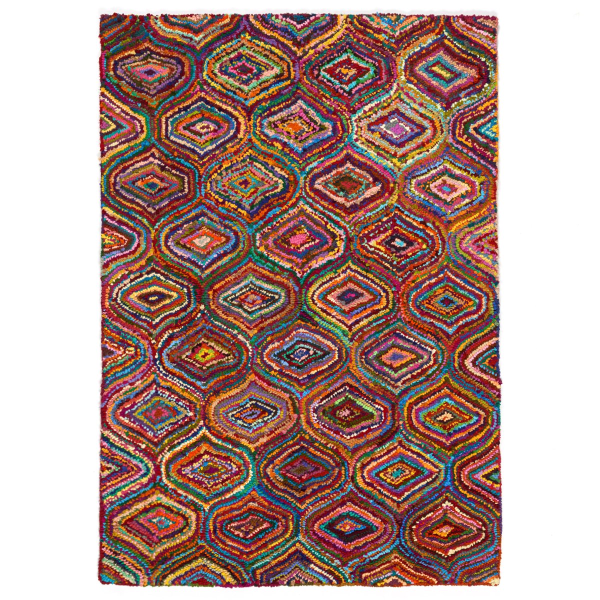 Чрезвычайно яркий дизайн ковра Kosice будоражит воображение — пестрые цвета и экзотический орнамент сделали столь популярный в быту декор настоящим арт-объектом. Повторяющийся геометрический орнамент не выглядит скучным, ведь он разбавлен богатой цветовой палитрой.В