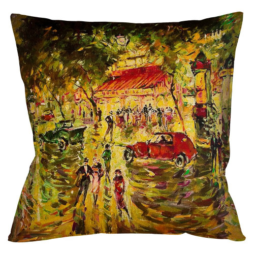 Прототипом подушки «Бульвар в Париже» стала картина первого русского импрессиониста Константина Коровина, написанная в 1939 году. Эта картина представляется самым ярким произведением среди обширной галереи ночных пейзажей «Парижские огни», вознесших художника в элиту европейского импрессионизма. Азартная ночная жизнь Парижа, залитого иллюминацией фонарей, сиянием витрин магазинов и кафе, с праздными толпами парижан и вереницами экипажей, - фантастический калейдоскоп, ошеломляющий зрителя волной впечатлений и скоростью меняющихся картин.